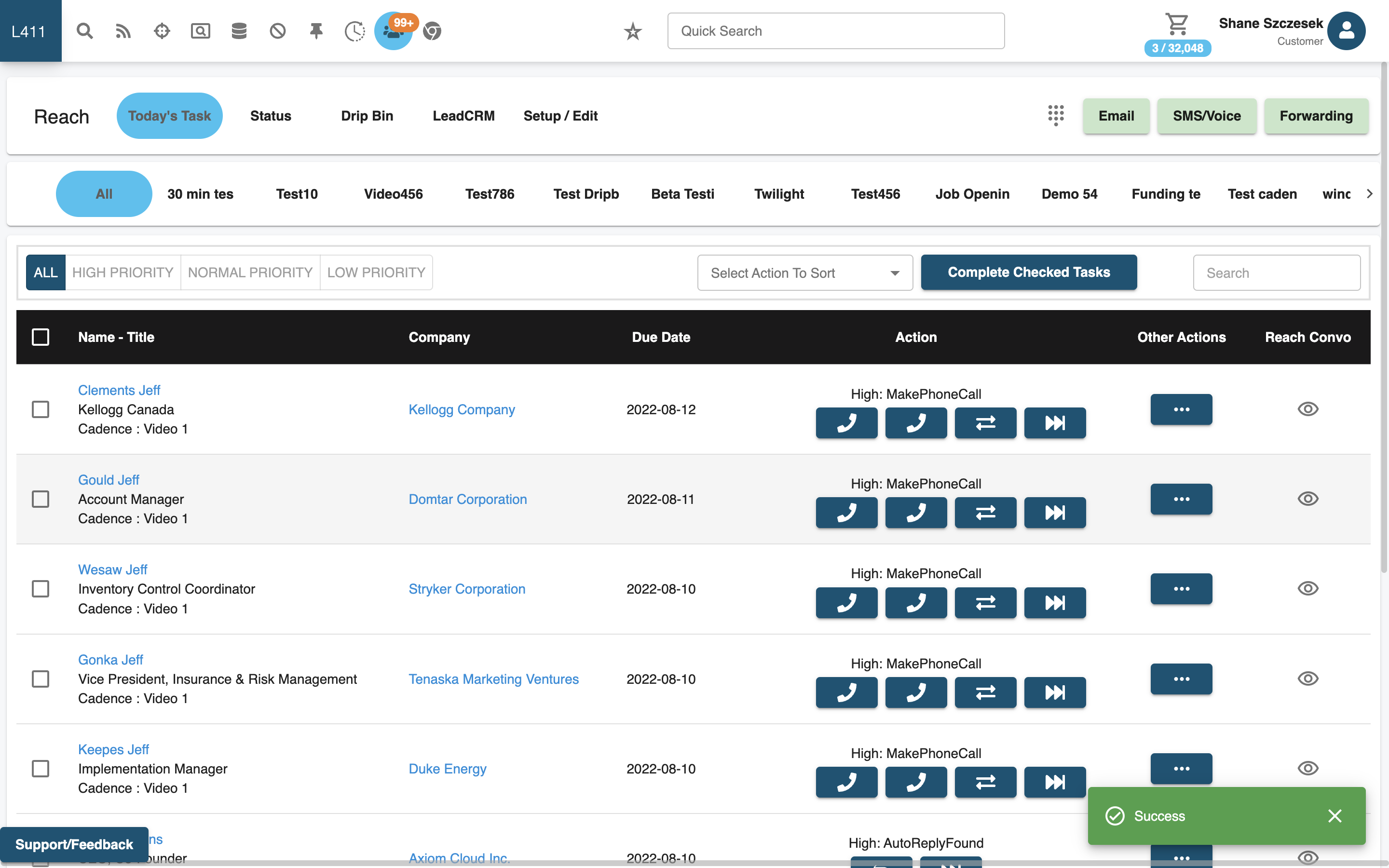 Lead411’s Sales Engagement tool Reach, is a built-in feature to the Lead411 platform that allows customers to add prospects directly to outreach campaigns. These multi-channel campaigns can be a mix of email/phone/SMS communication with customization options to reach your prospect at the right time with the right message.